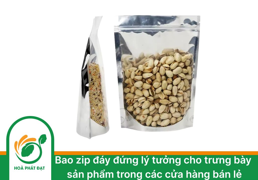 Bao zip đáy đứng lý tưởng cho việc trưng bày sản phẩm trong các cửa hàng bán lẻ