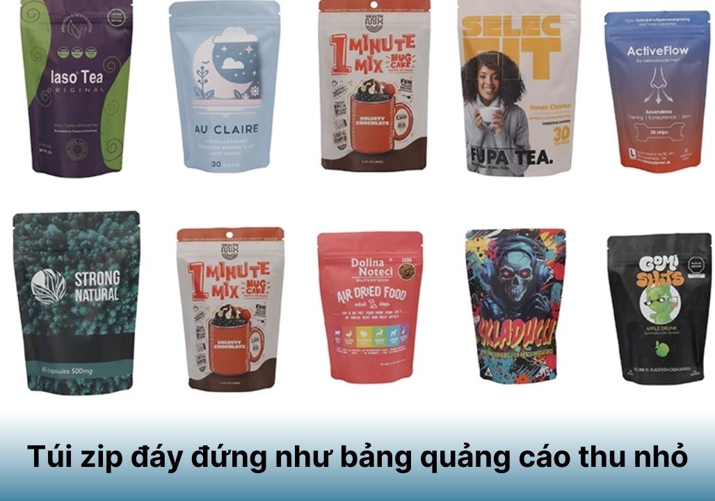 Túi zip đáy đứng như bảng quảng cáo thu nhỏ