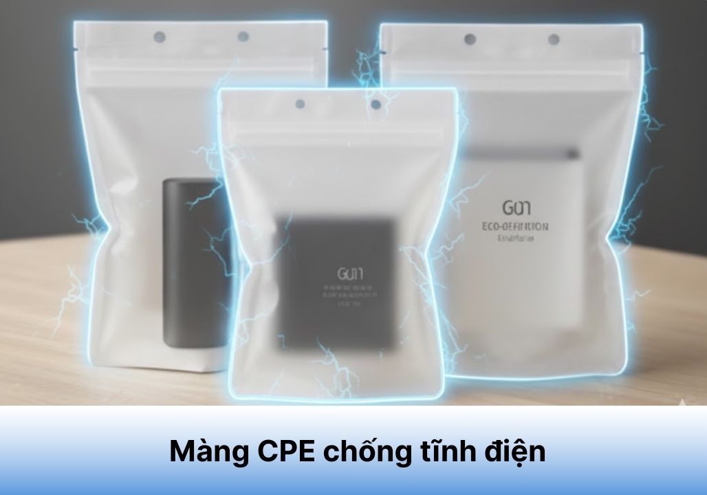 Vậy nên trong quá trình sản xuất màng mờ CPE cho ngành công nghiệp này, nhà sản xuất thường thêm các phụ gia chống tĩnh điện. Điều này giúp ngăn chặn sự tích tụ điện tích trên bề mặt bao bì, bảo vệ an toàn tuyệt đối cho các vi mạch, chip xử lý nhạy cảm bên trong.