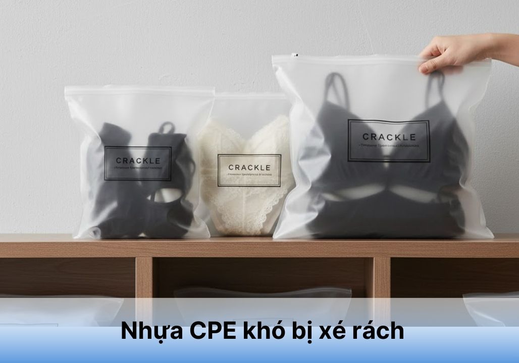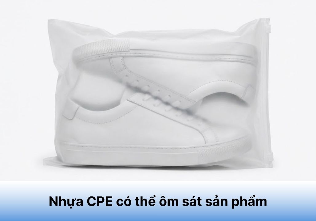Các loại túi zip đựng quần áo, giày dép thương hiệu lớn đều dùng CPE để đảm bảo túi không bị bục rách khi nhồi nhét sản phẩm, đồng thời giữ cho gói hàng luôn mềm mại, không làm xước sản phẩm bên trong.