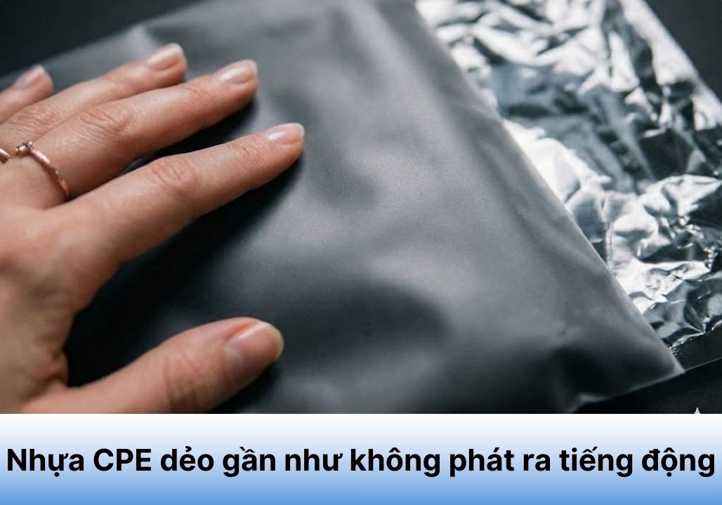 Độ dẻo giúp triệt tiêu ma sát âm thanh. Nếu bạn từng khó chịu với tiếng “lộp bộp”, “xào xạc” đanh tai khi mở túi nilon hàng chợ, bạn sẽ yêu thích sự tĩnh lặng của túi CPE. Khi vò nát hoặc bóc mở, nhựa CPE dẻo gần như không phát ra tiếng động, tạo nên trải nghiệm mở hộp tinh tế và lịch sự.