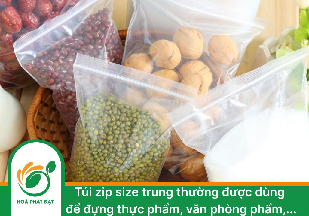 Túi zip size trung thường được dùng để đựng thực phẩm, văn phòng phẩm,…
